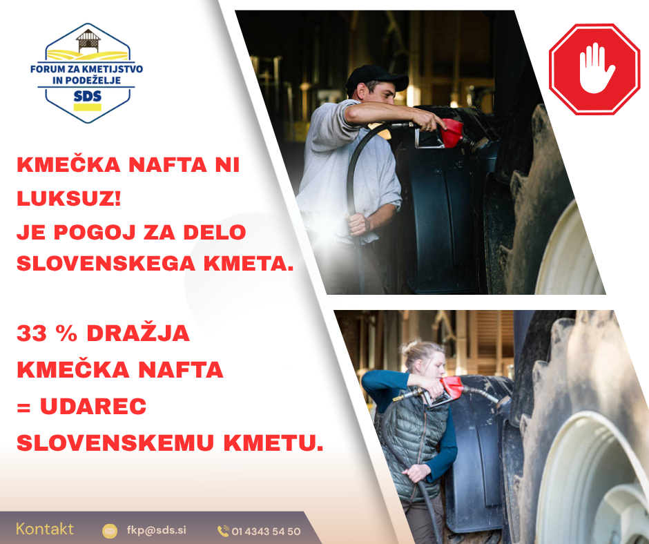 V času, ko bi moral slovenski kmet z vso zbranostjo in upanjem vstopati v spomladanska dela, se ponovno sooča z resnim udarcem, ki ogroža njegovo delo, obstoj in prihodnost slovenskega podeželja. Drastičen dvig cen kmečke nafte predstavlja nov dokaz, da so slovenski kmetje vse pogosteje izpostavljeni nerazumnim in nesorazmernim obremenitvam.