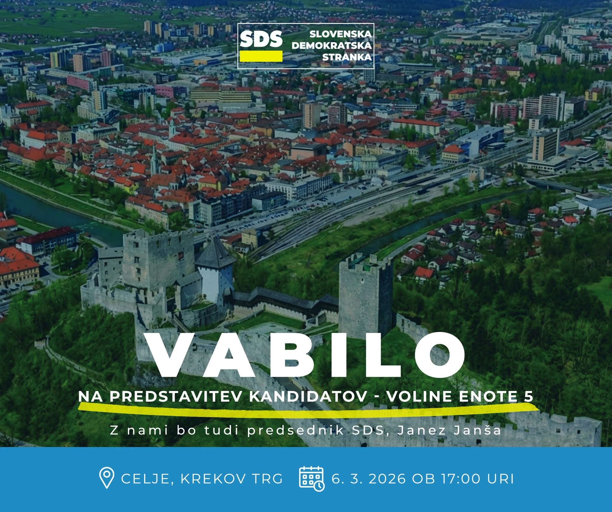 Z nami bo tudi predsednik SDS, Janez Janša, ki bo nagovoril zbrane in predstavil pogled na aktualne izzive ter prihodnje usmeritve.